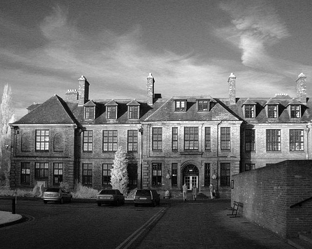Eerie light - the sun was only lighting the top half of the building, but see how diffuse the line between light and shadow is in the near infrared wavelength?
