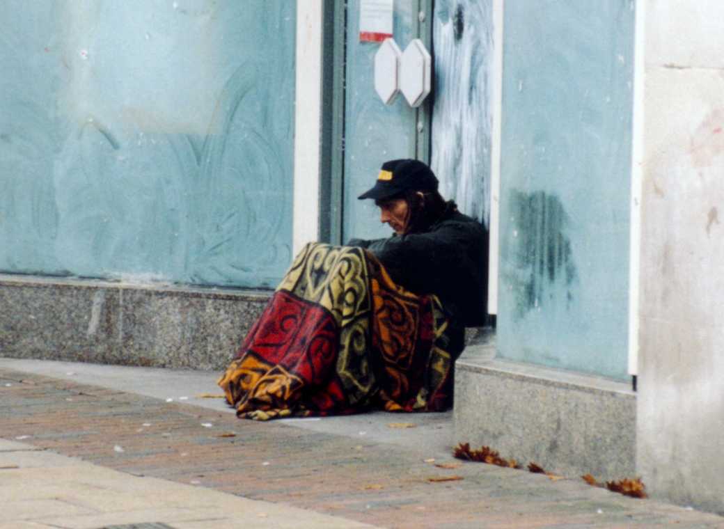 A new addition to Hull's fleet of vagabonds, this tattoed-faced chap hangs out on Jameson Street, occaisionally moving shop to the outside overhang of BHS if the weather becomes inclement. Bit boring, but he does have a funky blanket.