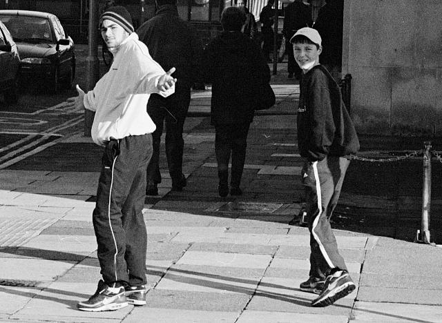 As I was out taking shots for my Textures project, one of these tracksuited persons shouted out, "Tek a pickcher of me, mate! Dare yer!" So I did. Some dare.