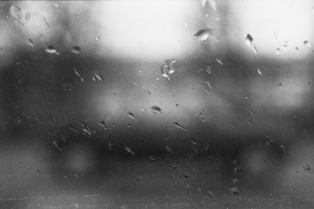 It's a car seen from a car, but focussed on the droplets on the window!